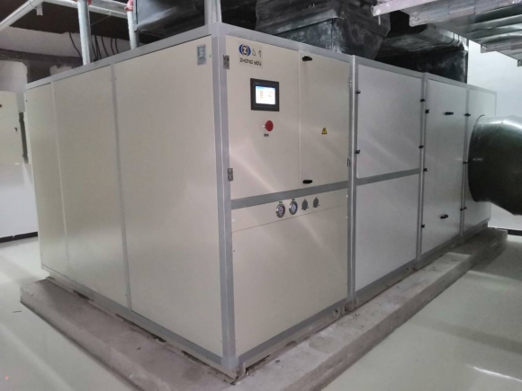 地下工程與地面工程相比,一個(gè)很突出的問(wèn)題就是潮濕。在夏季,地下工程內(nèi)外空氣比焓差很大,普通除濕機(jī)沒(méi)有足夠的制冷量把新風(fēng)露點(diǎn)溫度控制得足夠低,難以保證新風(fēng)進(jìn)入地下工程后不結(jié)露,從而給通風(fēng)除濕系統(tǒng)的設(shè)計(jì)和運(yùn)行帶來(lái)諸多問(wèn)題;同時(shí)室內(nèi)處理好后的適宜空氣直接排至室外也會(huì)造成能源的極大浪費(fèi)。