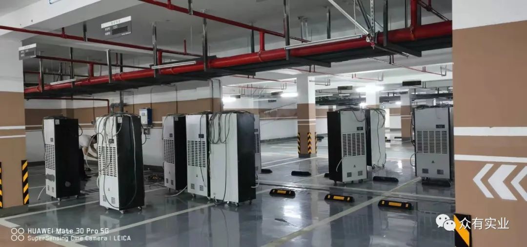 根據實際情況安裝了眾有工業除濕機,可以快速有效的去除潮濕空氣,使地下車庫環境中的空氣變得相對干爽舒適,并將室內濕度始終控制在60%RH以下,可以從根本上解決地下車庫的潮濕問題,效果非常明顯,是地下車庫除濕的不錯選擇。