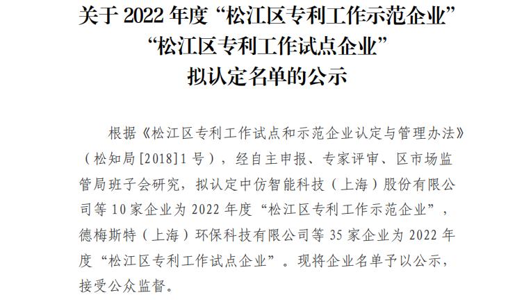 根據《松江區專利工作試點和示范企業認定與管理辦法》(松知局[2018]1 號),經自主申報、專家評審、區市場監管局班子會研究,擬認定上海非眾制冷設備有限公司等35家企業為 2022年度“松江區專利工作試點企業”。這標志著上海非眾一直堅持著高質量創新發展的道路上,發揮了較好的示范作用。