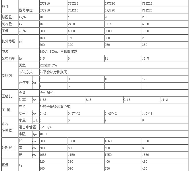 水冷調溫、降溫型常規除濕機技術指標<1>